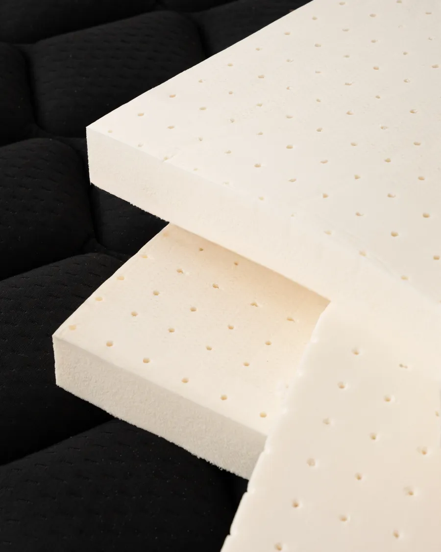 備長炭以多孔活性結構有效吸附濕氣與異味,讓床墊內部保持乾爽清新。泡棉本身具備柔彈支撐性,與乳膠層相互協作,使睡面更加透氣、安定且舒適。